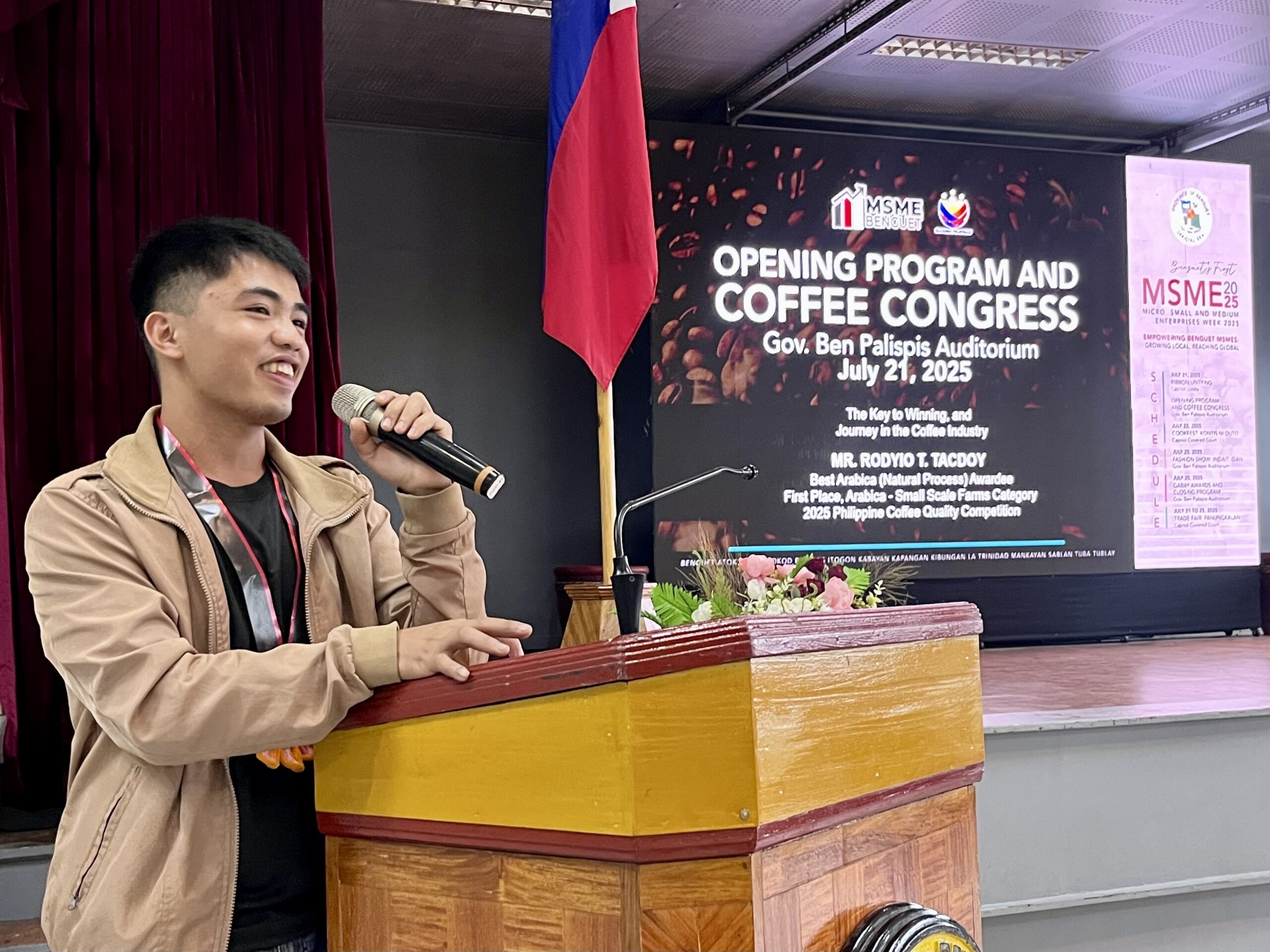 Tacdoy, a 22-year old farmer from barangay Wangal in La Trinidad, spoke to farmers and entrepreneurs during the recent Benguet Coffee Congress at the provincial capitol on July 21.