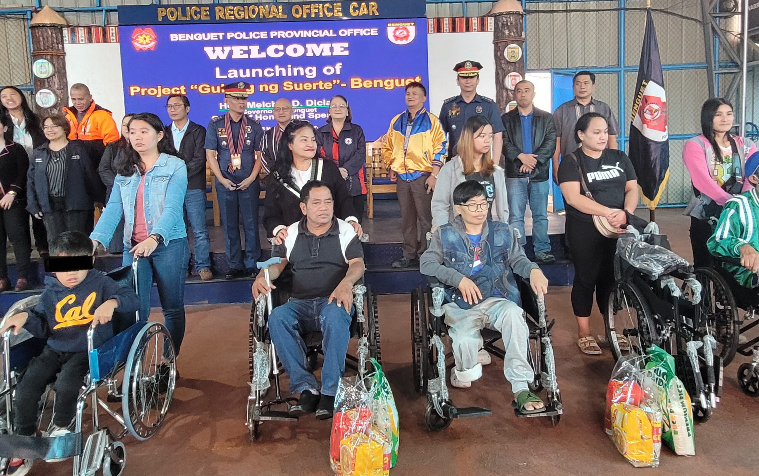 The Benguet Provincial Police Office, under the leadership of Col. Lambert A. Suerte, together with Benguet Gov. Melchor D. Diclas led the turn over wheelchairs to 16 beneficiaries during the launch of the Project “Gulong ng Suerte” on Sept. 2.
