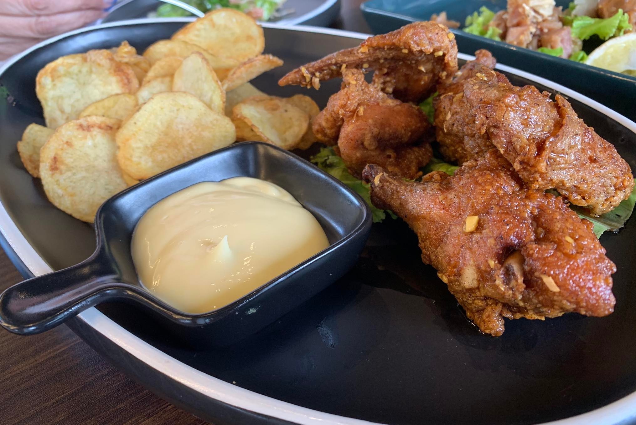 Buttermilk Fried Chicken is simply delicious with potato chips and mayo.