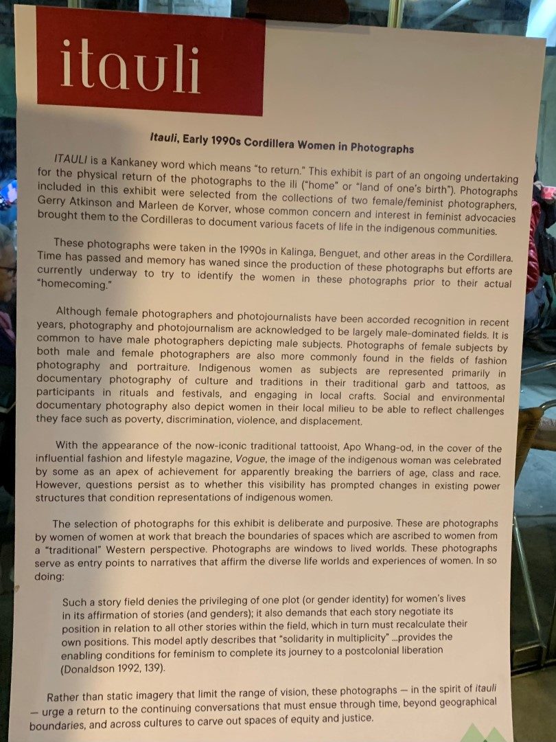 Recalling the images of Philippine indigenous women and men portrayed in National Geographic Magazines in the early 1900’s showed them bare topped and clad in wrap around skirts and loin cloths. Indeed, Itauli, the Kankana-ey word which means “to return” apt for the exhibit mounted at the Museo Kordilyera of the University of the Philippines Baguio, provides a conversation of how pictures can rob one of essence from the photographer’s eyes and lens. The Monograph and exhibit entitled, “Itauli: Reframing Cordillera Women in Photographs”, were launched on July 22, 2024.