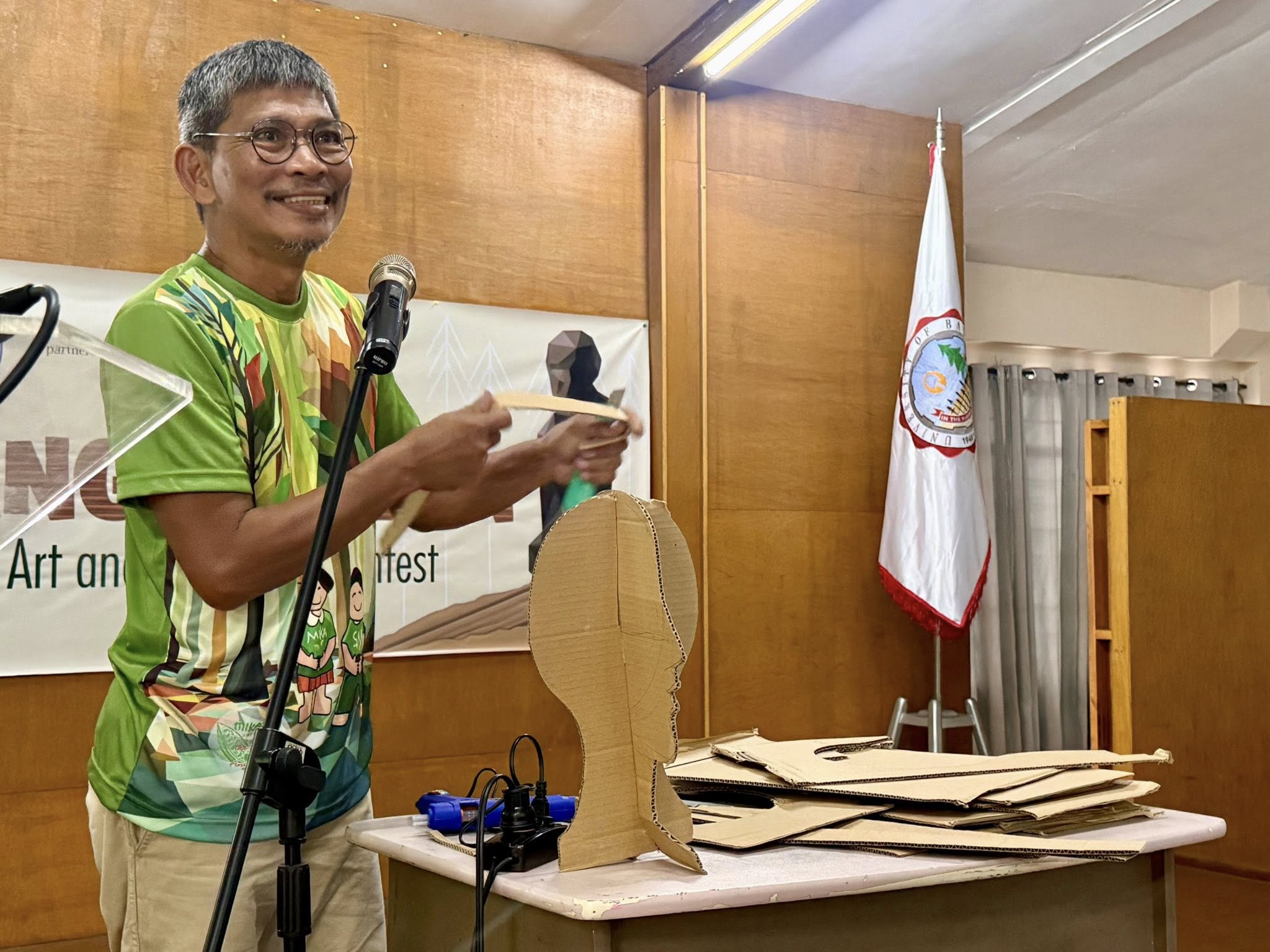 Sculptor Manilito Modejar facilitated the “Likhang Karton” workshop at the University of Baguio last 25 October 2025 for more than 200 high school students for the National Delphic Council Philippines.