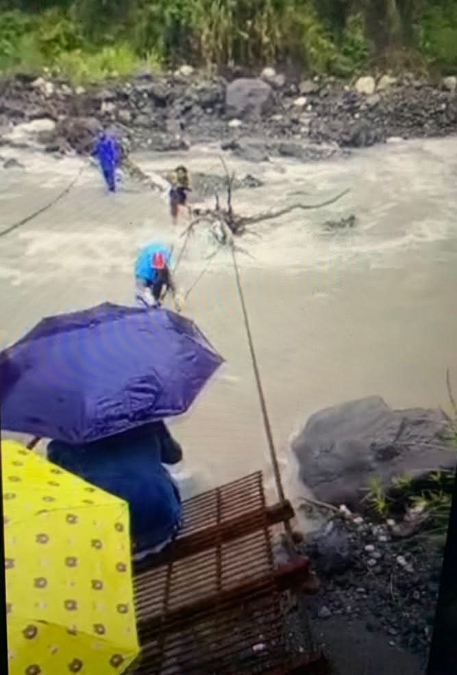Video downloaded by Glory Madawat Smith shows the ordeal of the residents in crossing the Santa Cruz River between Barangay Pinayag and Latbang in Nueva Viscaya. The residents help each other in safely getting across.