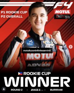 The Baguio bred young car racer coached by former F1 driver Alex Yoong won the Southeast Asia F4 Rookie Championship against drivers from 11 countries.